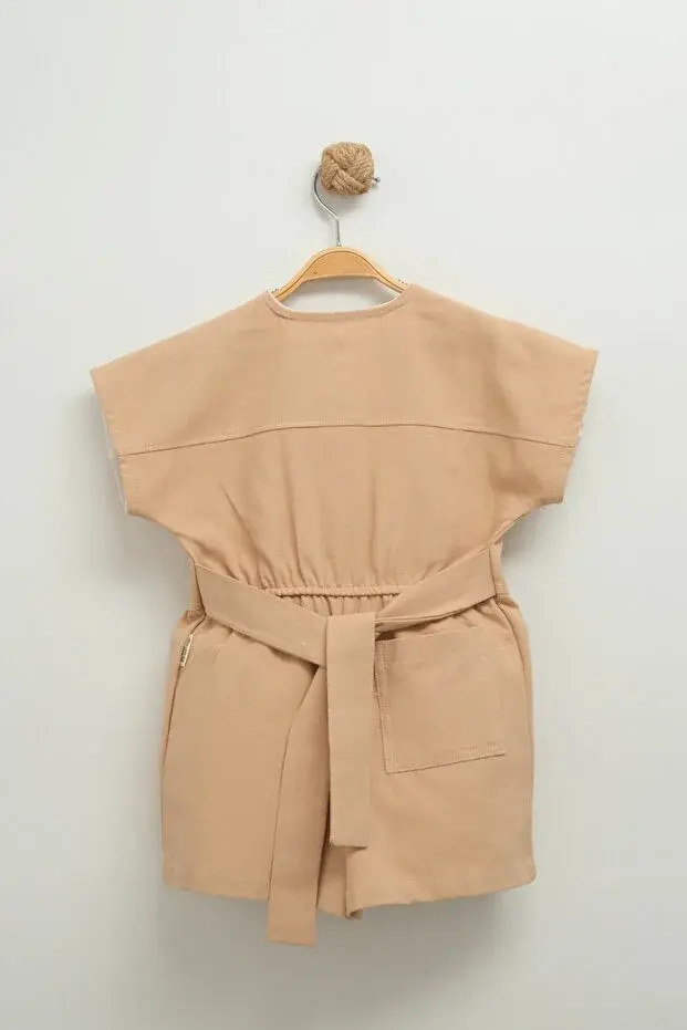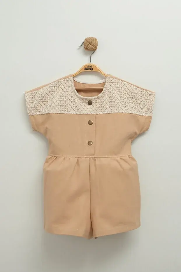 Dantel Detaylı Gabardin Kız Çocuk Tulumu - 2,3,4,5 Yaş Seri - 1009-Kahverengi