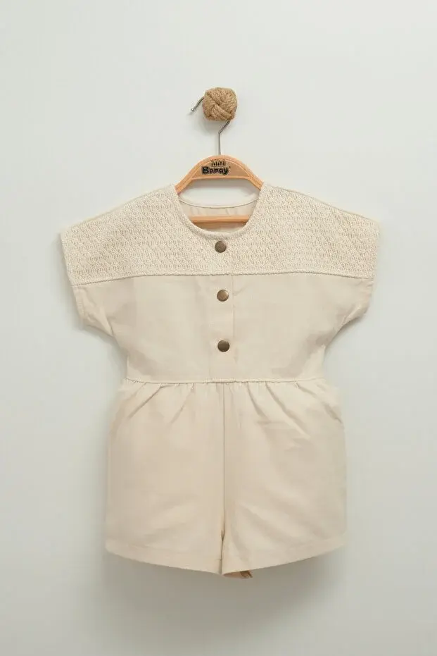 Dantel Detaylı Gabardin Kız Çocuk Tulumu - 2,3,4,5 Yaş Seri - 1009-Krem