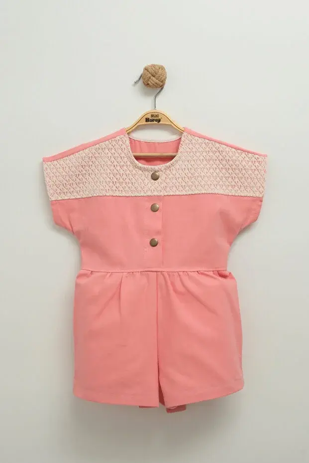 Dantel Detaylı Gabardin Kız Çocuk Tulumu - 2,3,4,5 Yaş Seri - 1009-Pembe