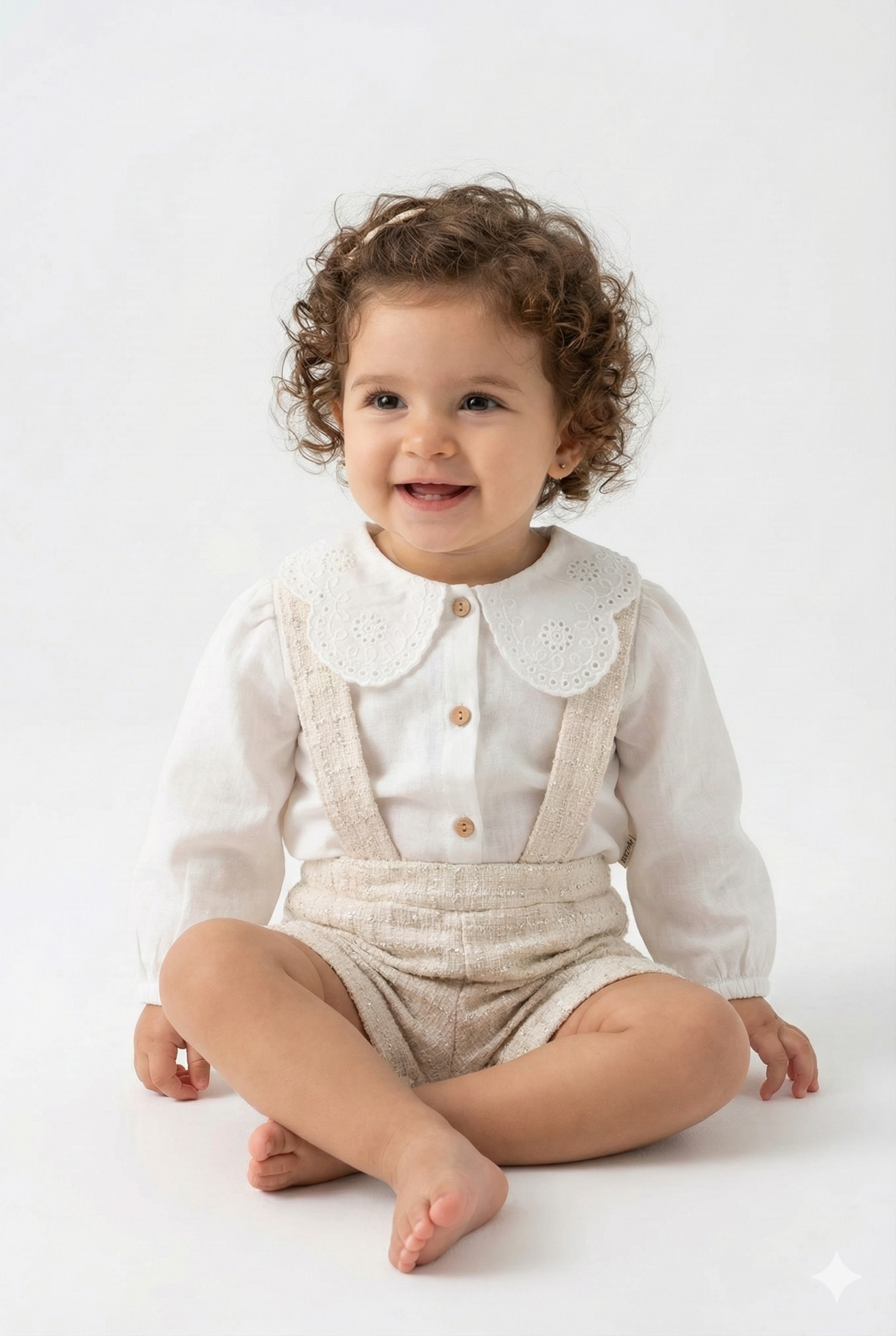 - Bebe yaka detayı ile zarifliği yakalayan bu takım, şıklığına şıklık katmak isteyen ebeveynlerin tercihi olabilir.