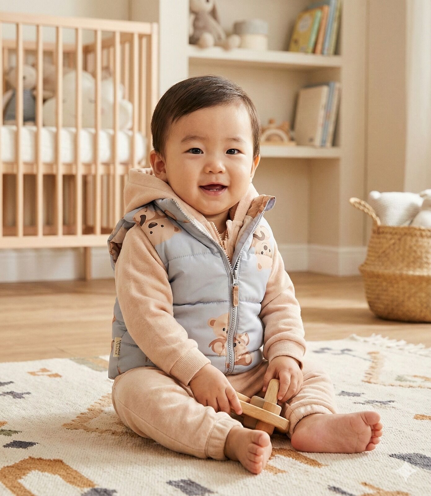 - Kapüşonlu tasarımı ile bebeğinizin başını soğuktan korurken şık bir görünüm sunar.