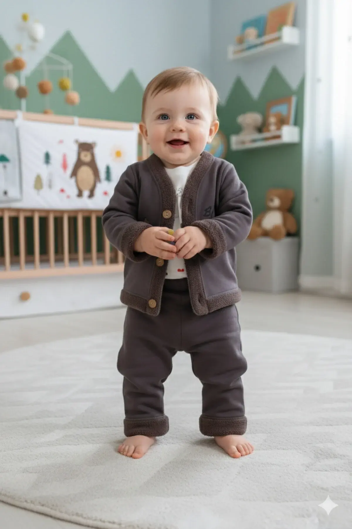 - 3'lü takım içeriğiyle (hırka, tişört ve pantolon) pratik ve ekonomik bir seçenek olarak öne çıkar.