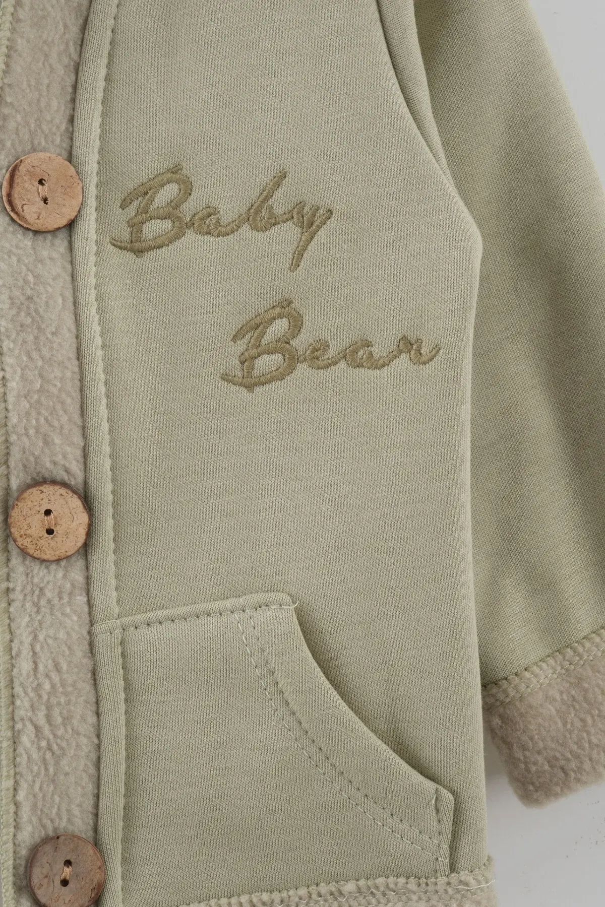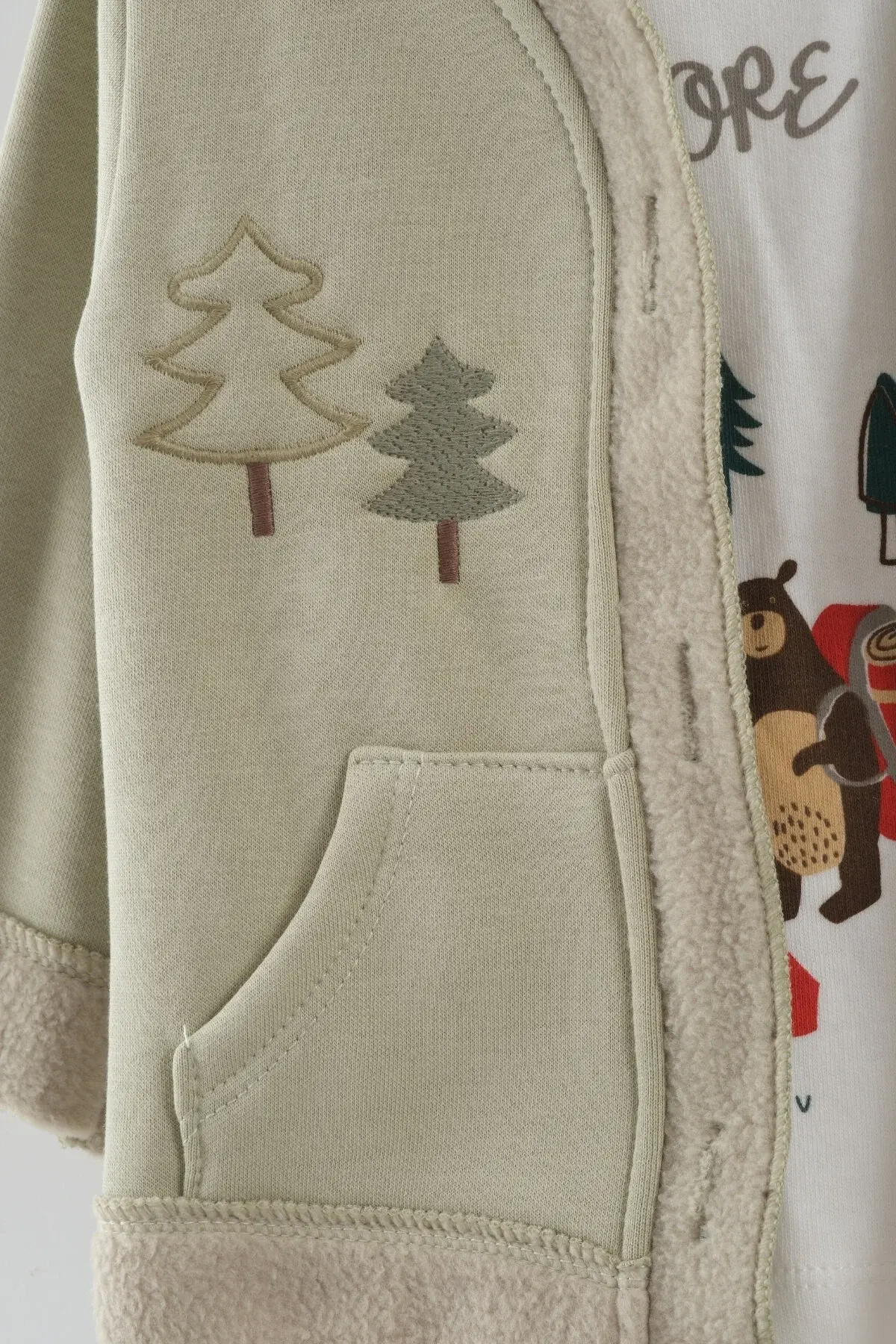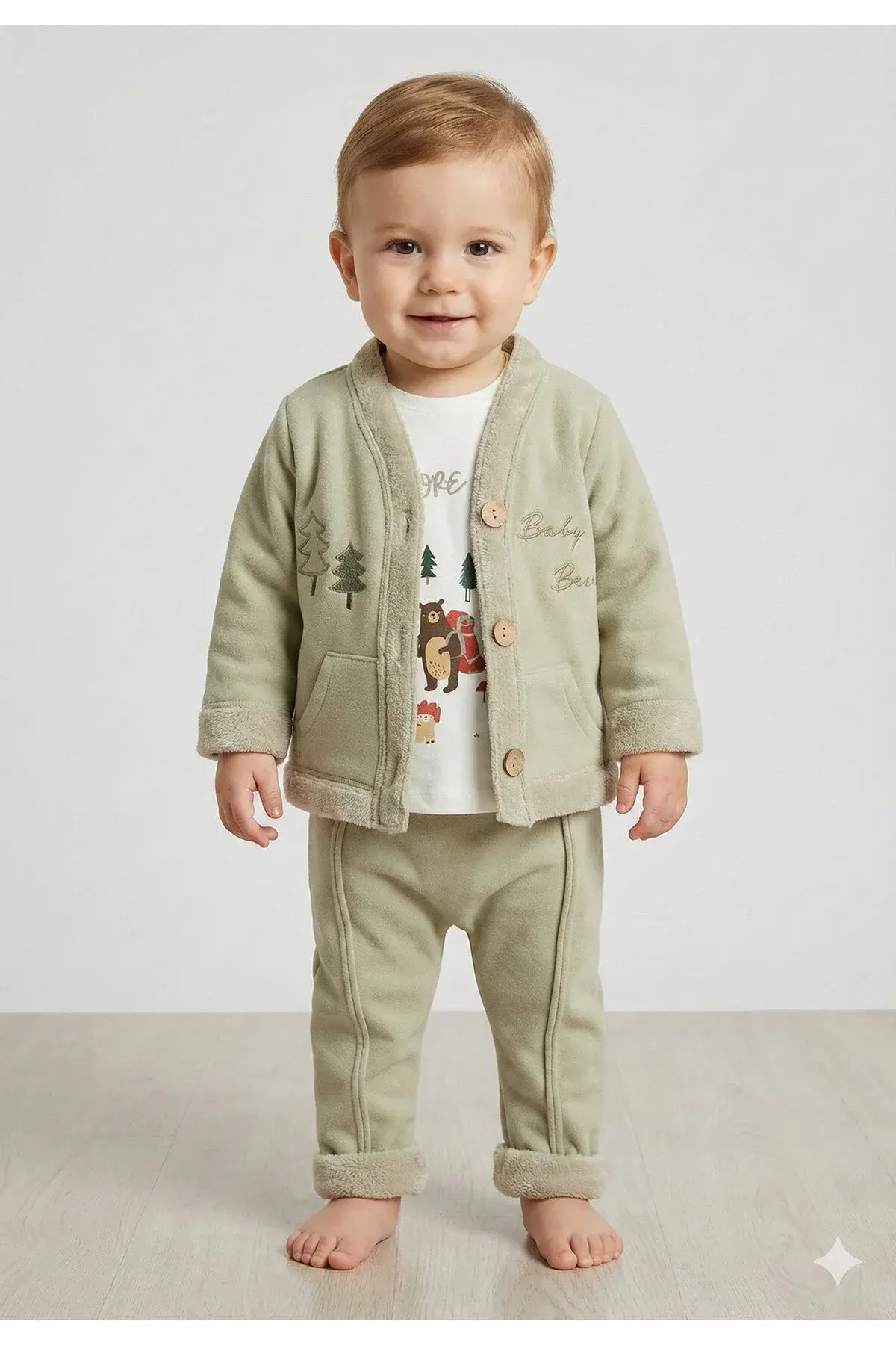 Erkek Bebek Çam Ağaç Nakışlı Yeşil Hırka Tişört Pantolon 3'lü Takım (9-12-18 Ay) Seri - 885-Yeşil