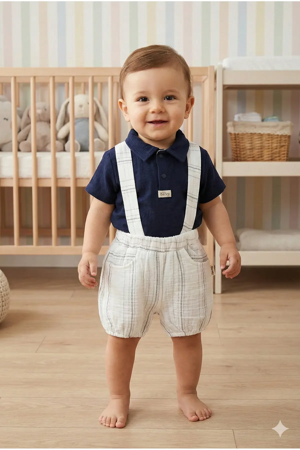 - 3'lü paket içeriği ile hem gömlek hem de tişört ve askılı şort dahil olmak üzere tam bir takım sunar.