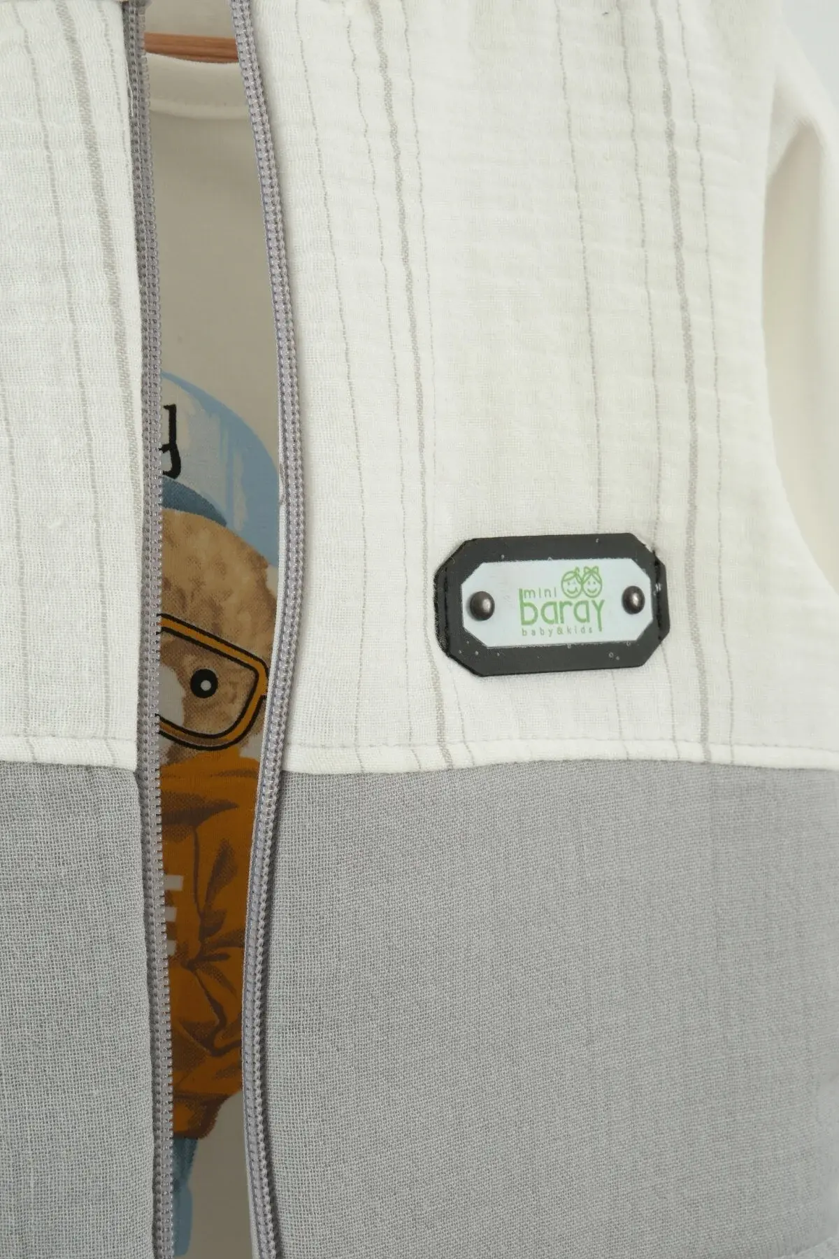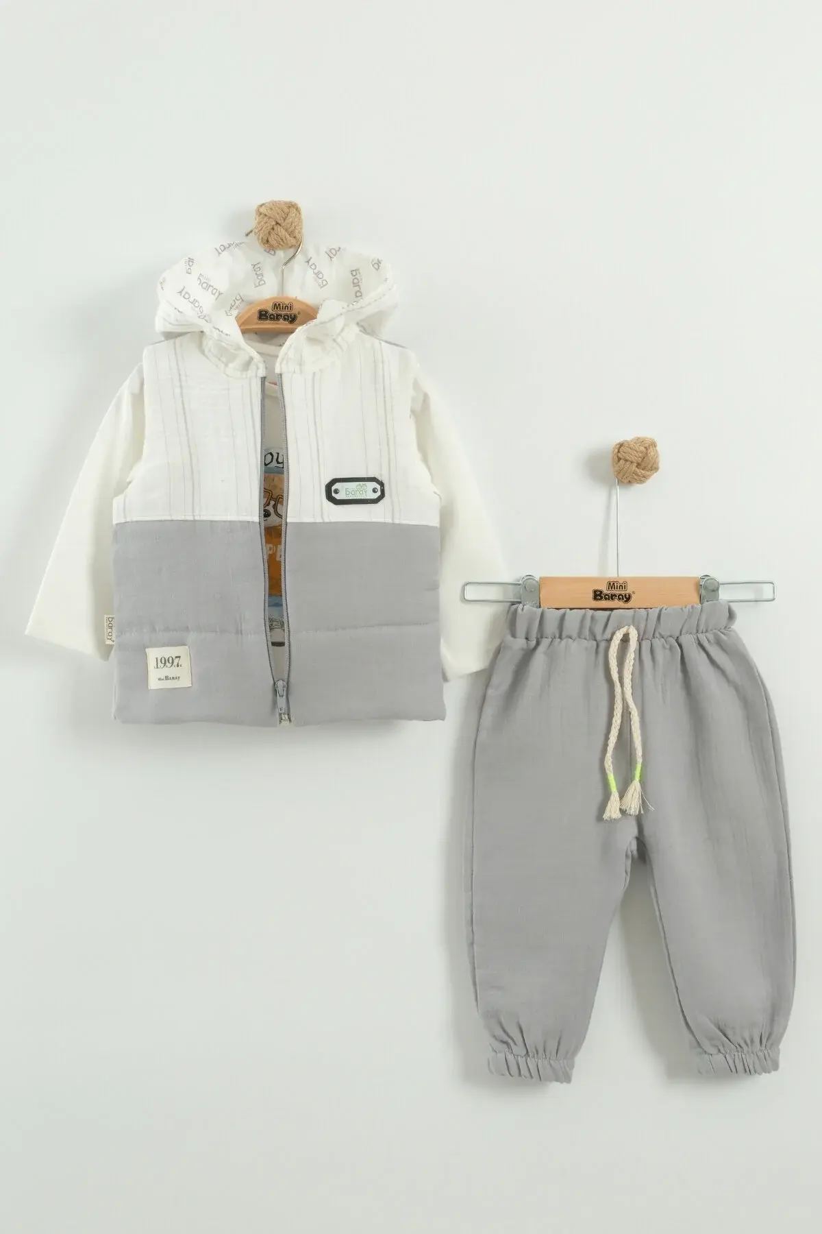 Erkek Bebek Gri Mont ve Jogger Pantolon 3'lü Takım (9-12-18 Ay) Seri - 1083-Gri