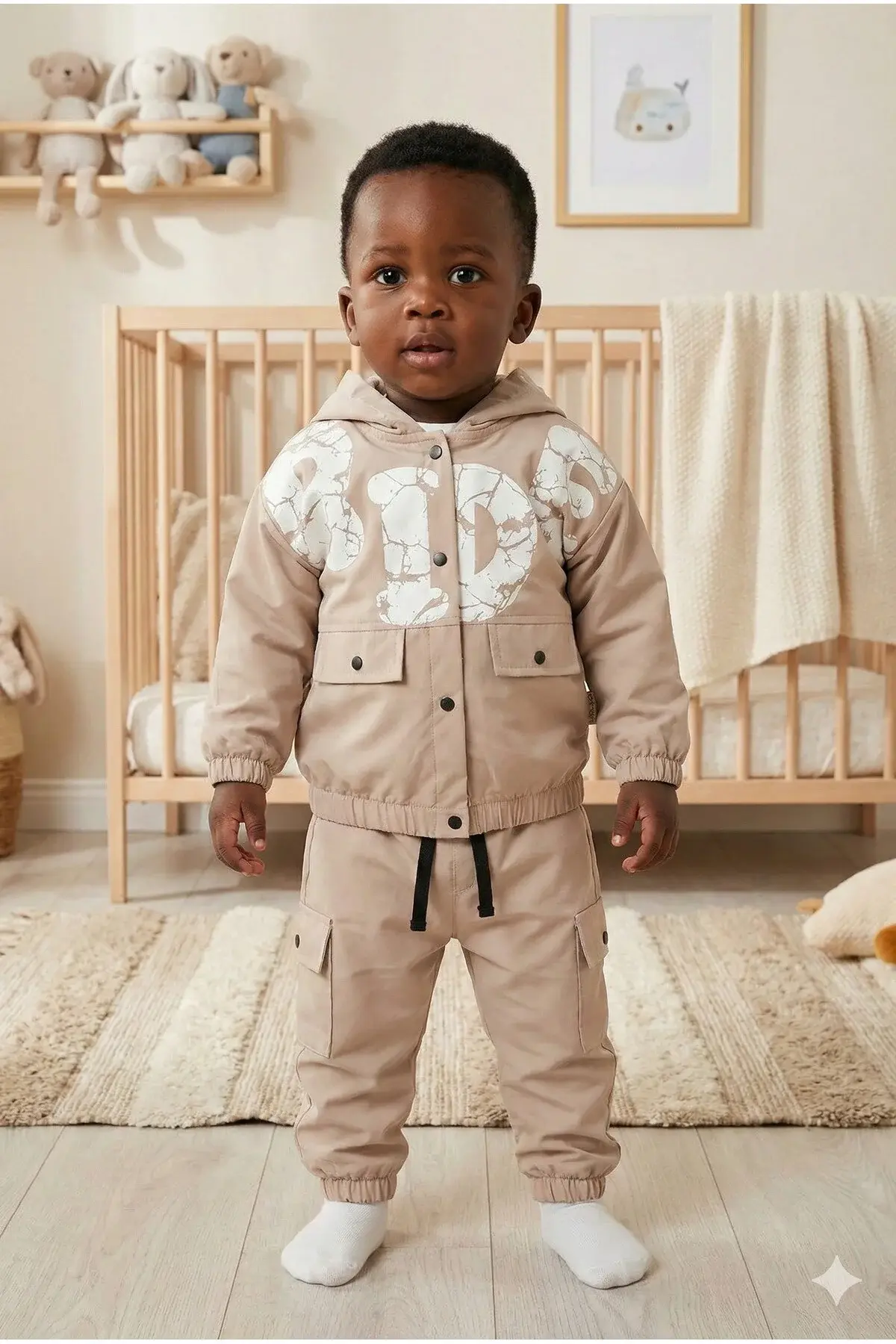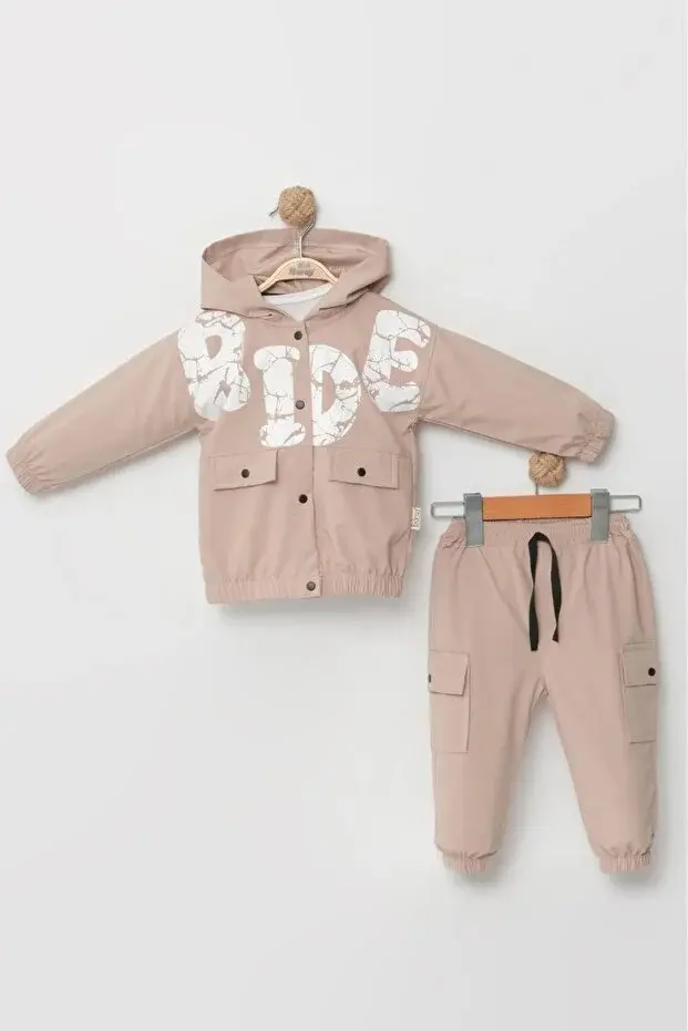 Erkek Bebek Kargo Pantolonlu Yağmurluklu Bej 3’lü Takım (9-12-18 Ay) - Pamuklu Seri - 1040-Bej