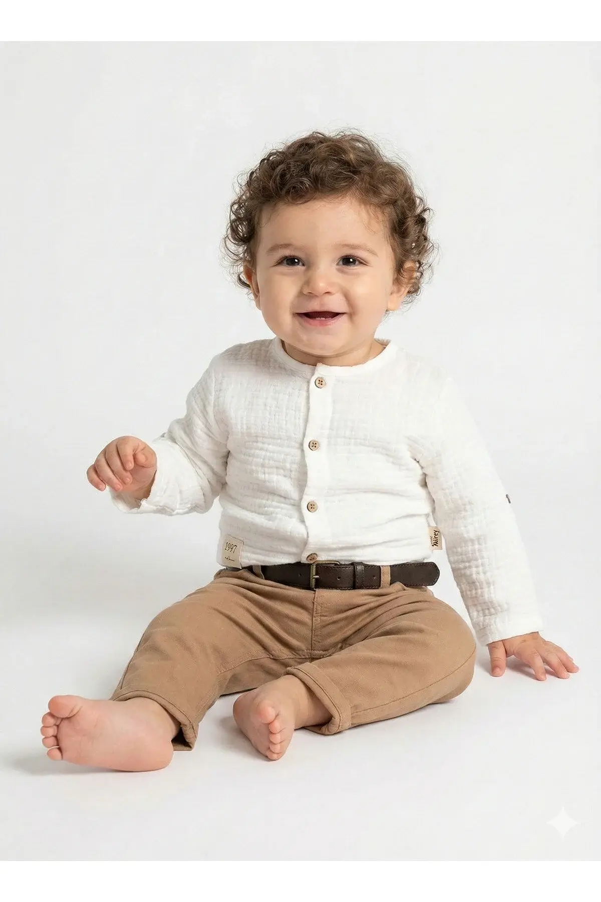 Erkek Çocuk Gabardin Pantolon & Müslin Gömlekli 2’li Pamuk Takım (9 12 18 ay) - Renkli Seri - 997-Beyaz