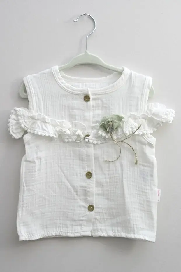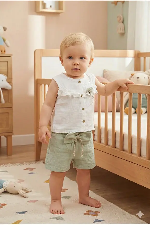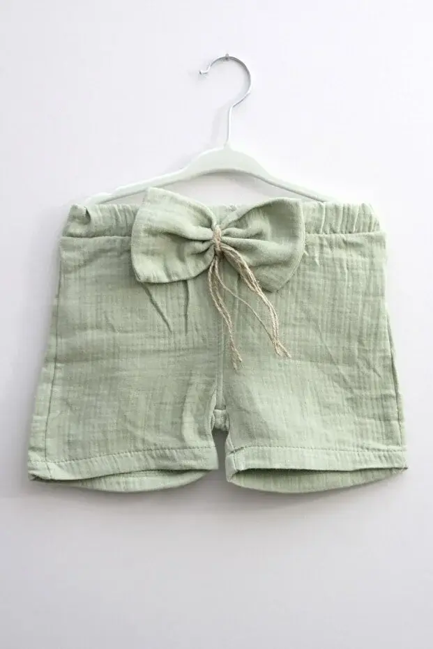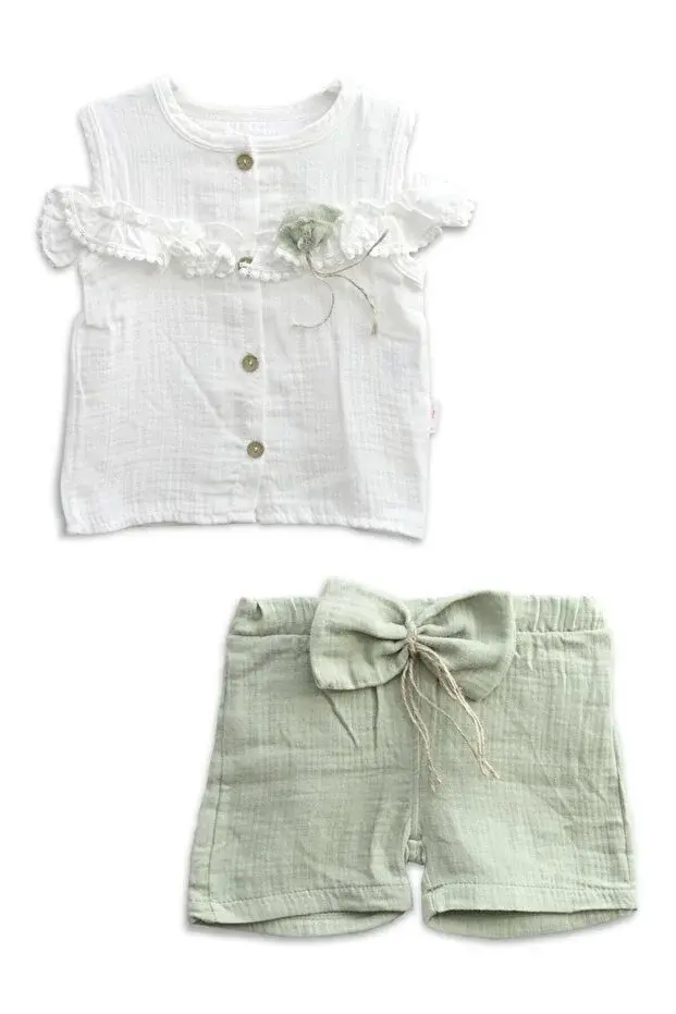 Fırfır Detaylı Müslin Şortlu Kız Takımı - %100 Pamuk Nefes Alabilir - (9-12-18 Ay) Seri - 746-Yeşil