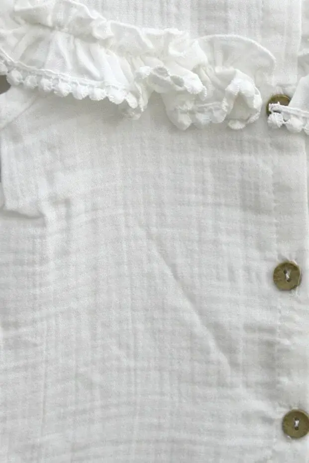 Çiçek Bronşlu Gömlek /Fiyonklu Keten Şort / 2'li Kız Bebek Takımı
