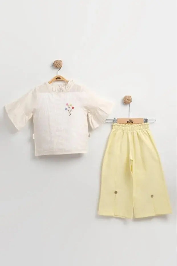 İspanyol Paça Dokuma Gömlekli Kız Çocuk Sarı Yazlık Takım (2-3-4-5 yaş) Seri - 1059-Sarı