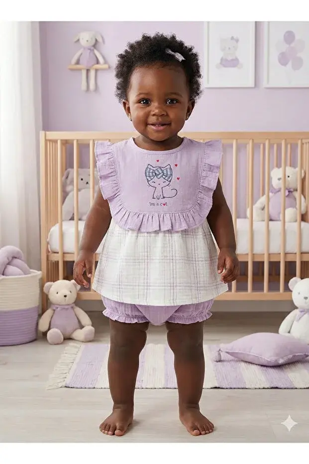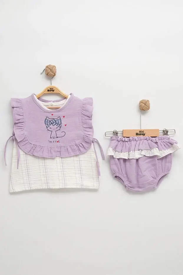 Kilotlu Bolerolu Müslin Kız Yazlık Takım 9-12-18 Ay Seri -985-Mor