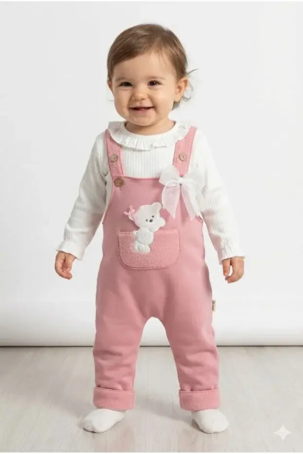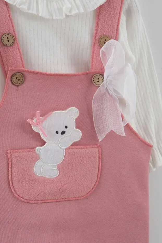 Kız Bebek Ayı Nakış Pembe Tulum Takım (9-12-18 Ay) Seri - 891-Pembe