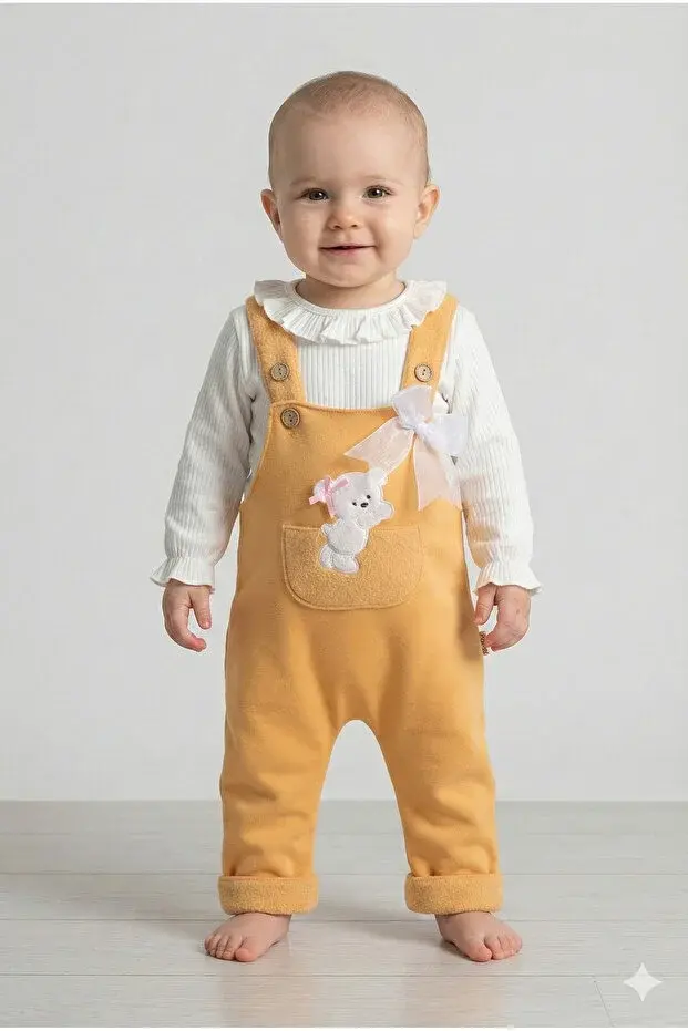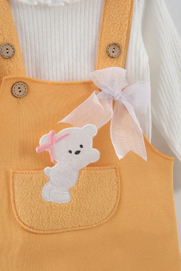 Kız Bebek Ayı Nakış Sarı Tulum Takım (9-12-18 Ay) Seri -891-Sarı