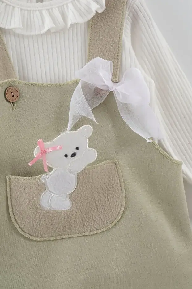Kız Bebek Ayı Nakış Yeşil Tulum Takım (9-12-18 Ay) Seri - 891-Yeşil