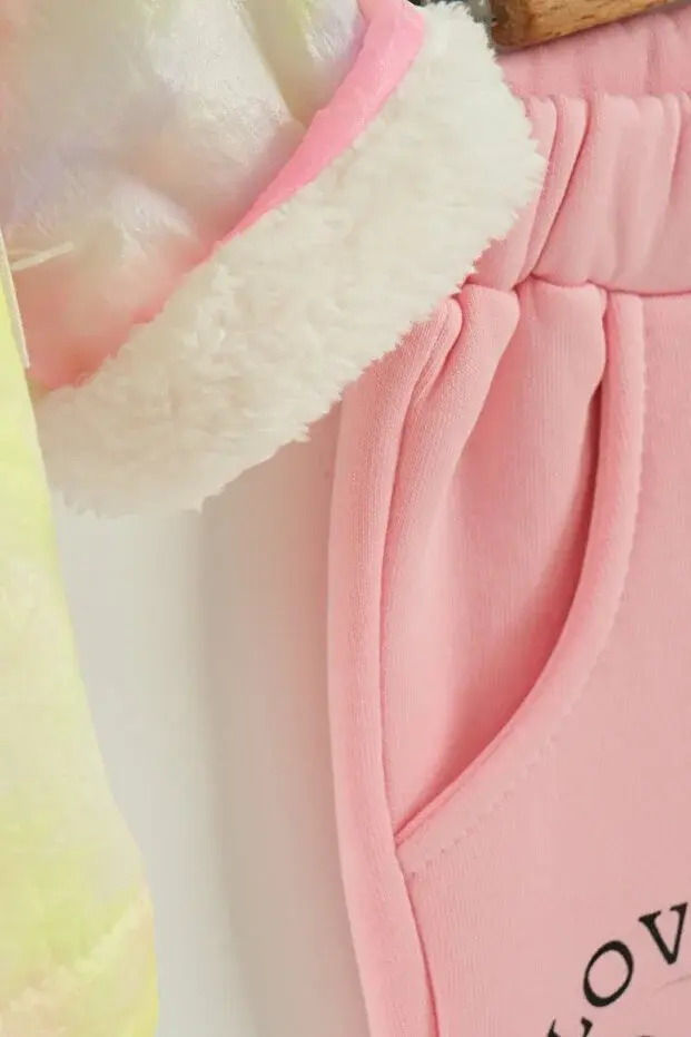 Kız Bebek Baskılı Sweatshirt, Pantolon ve Ceket 3'lü Takım (9-12-18 Ay) Seri - 1018-Pembe