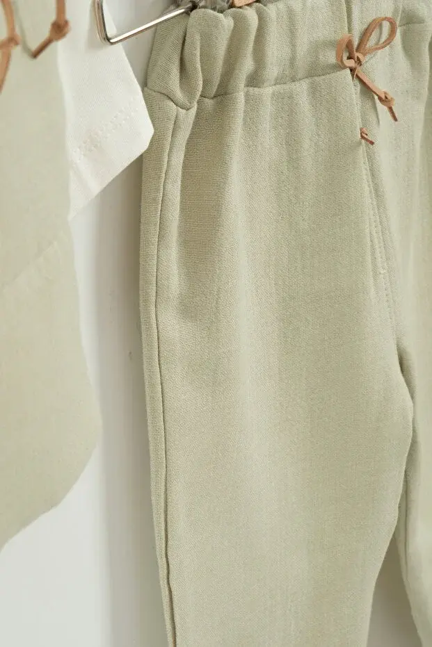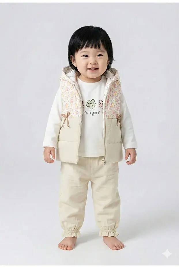 Kız Bebek Çiçek Desen Yelekli 3'lü Eşofman Takım (9-12-18 Ay) Seri -1084-Yeşil