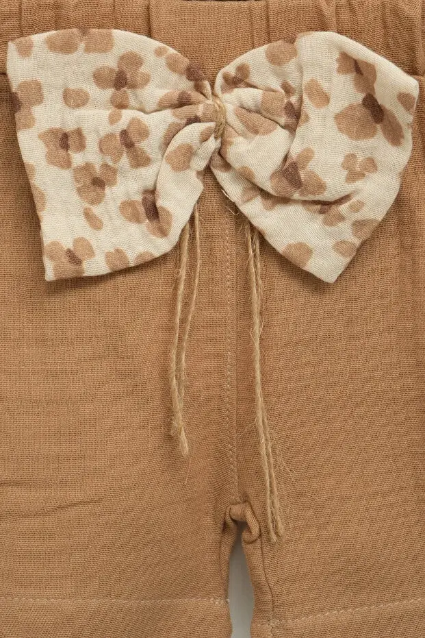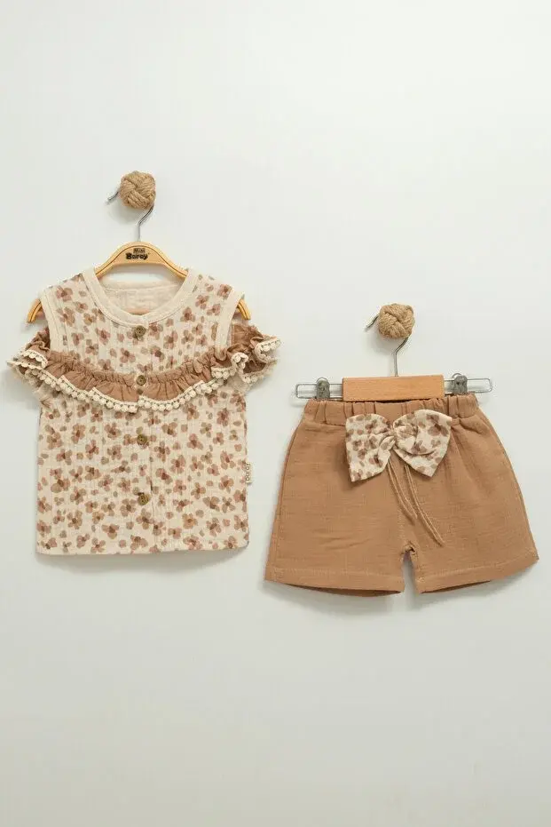 Kız Bebek Çiçek Desenli Bluz ve Şort Takımı (9-12-18 Ay) Seri -1077-Kahverengi