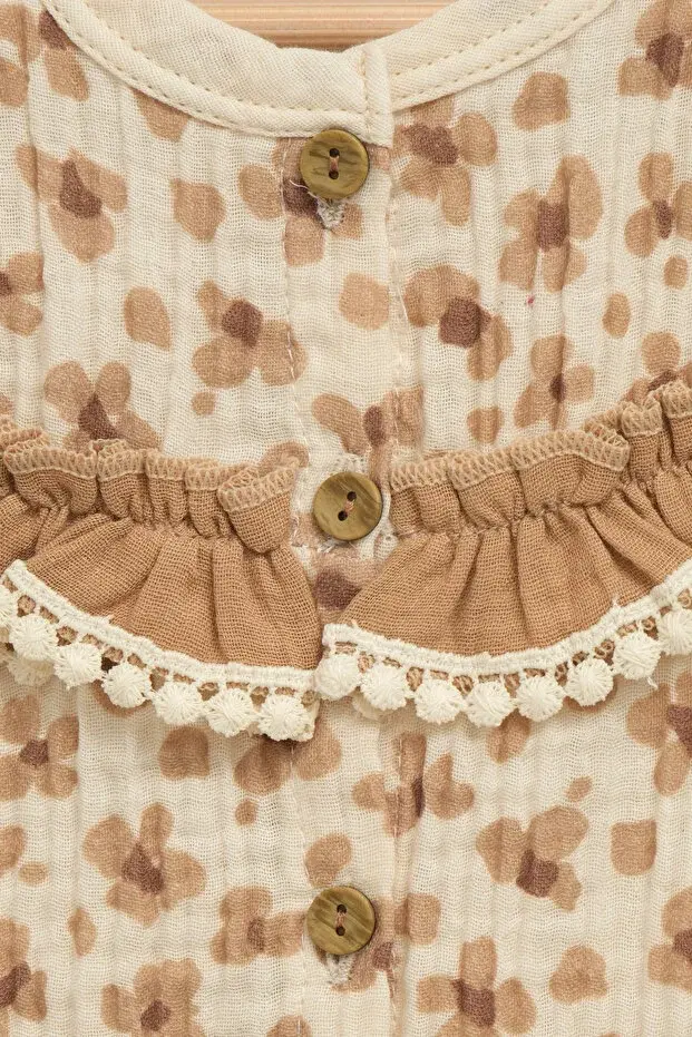- Volanlı kol tasarımı, bebeğinizin hareket özgürlüğünü kısıtlamadan şık bir görünüm sunar.