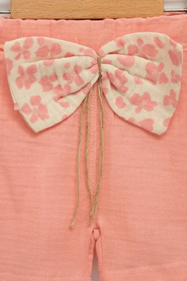 Kız Bebek Çiçek Desenli Bluz ve Şort Takımı (9-12-18 Ay) Seri -1077-Pembe