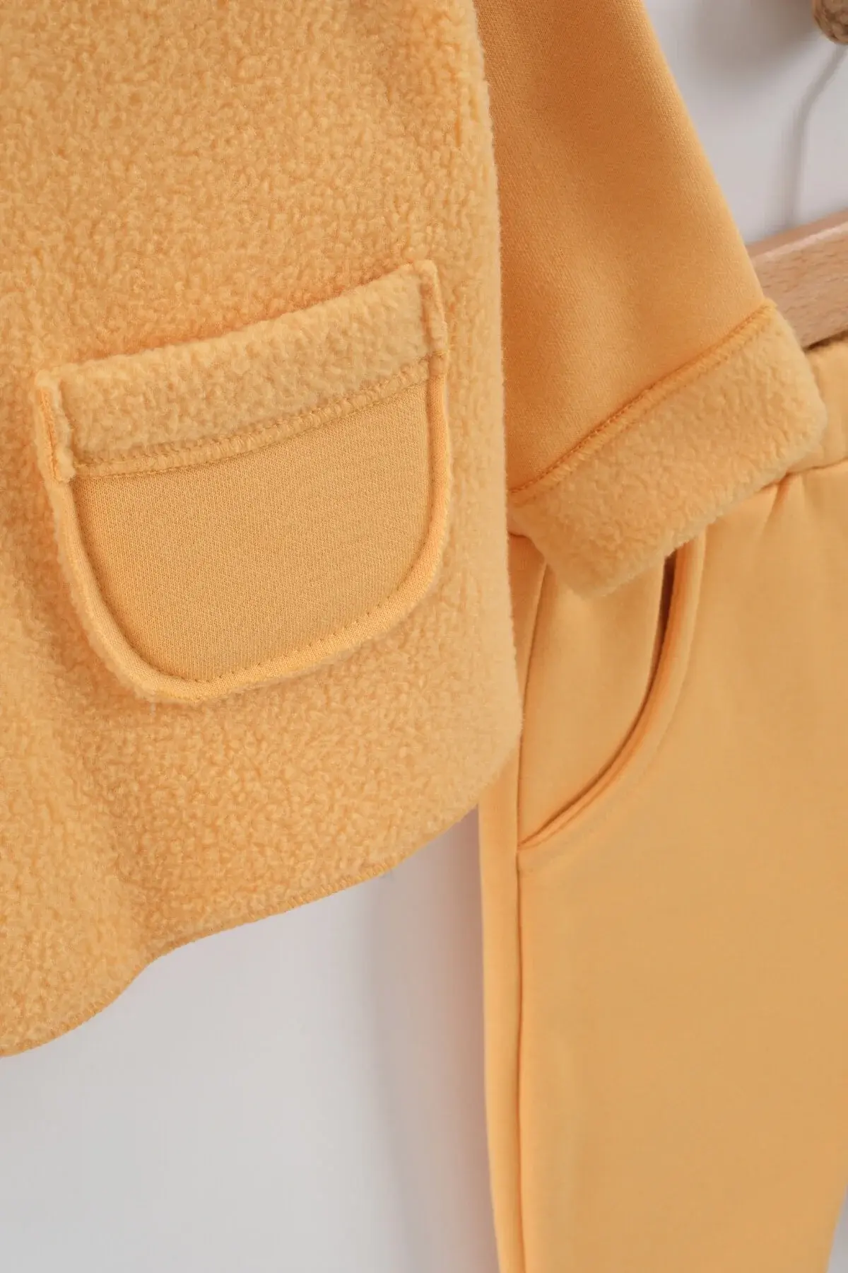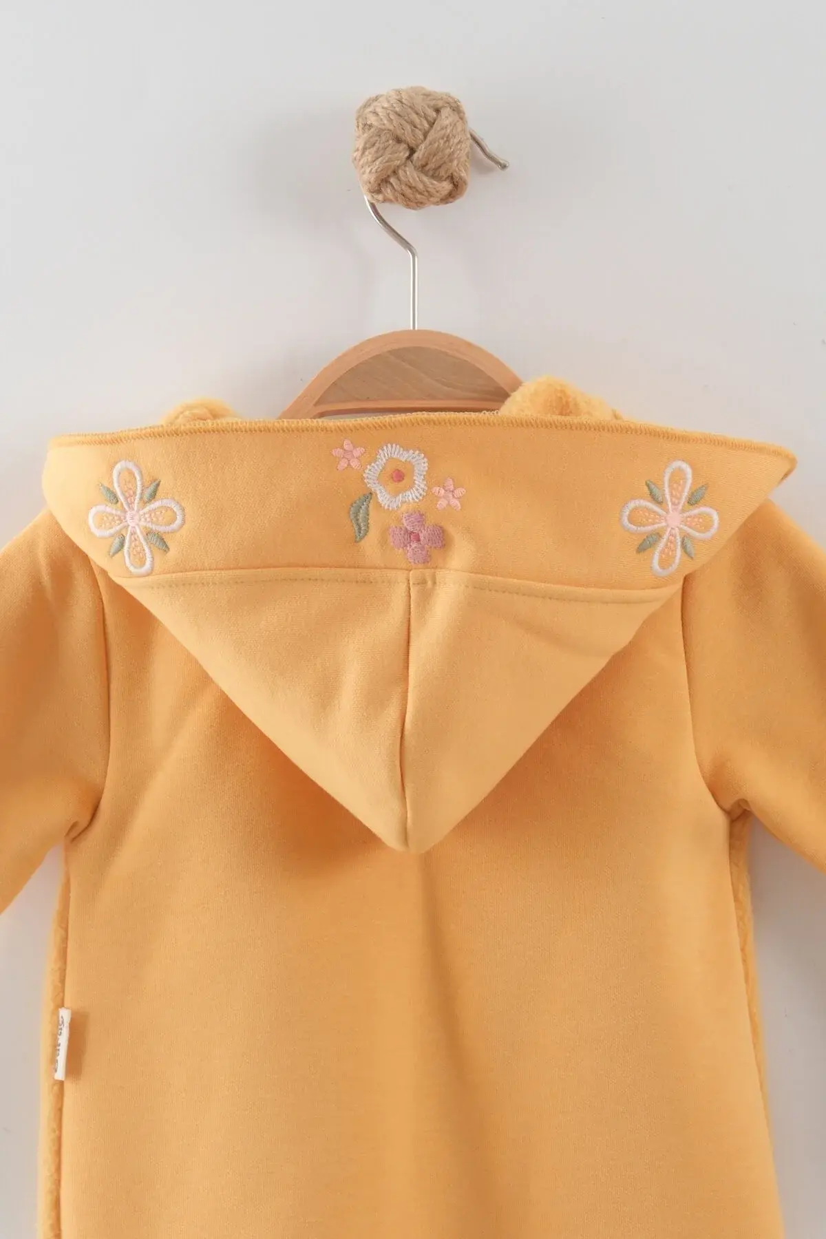 Kız Bebek Çiçek Nakışlı Kapüşonlu Kanguru Model Sarı Eşofman Takım (9-12-18 Ay) Seri - 890-Sarı