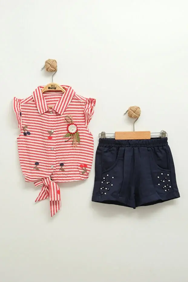 Kız Bebek Çizgili Bluz ve Şort Takımı (9-12-18 Ay) Seri - 802-Somon Pembe