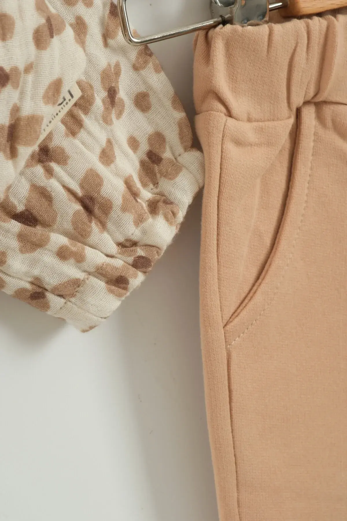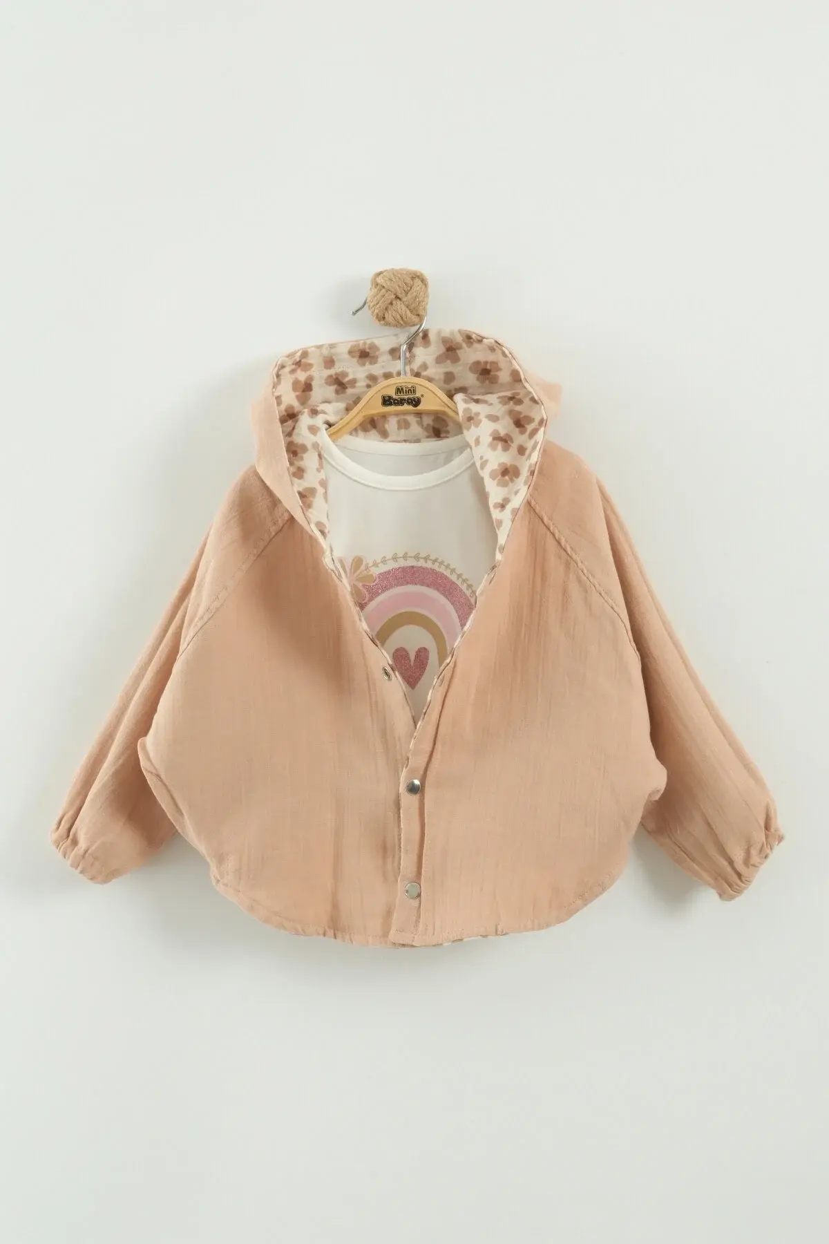 Kız Bebek Kapüşonlu ve Pantolon Bej 3'lü Takım (9-12-18-24 Ay) Seri - 1081-Bej