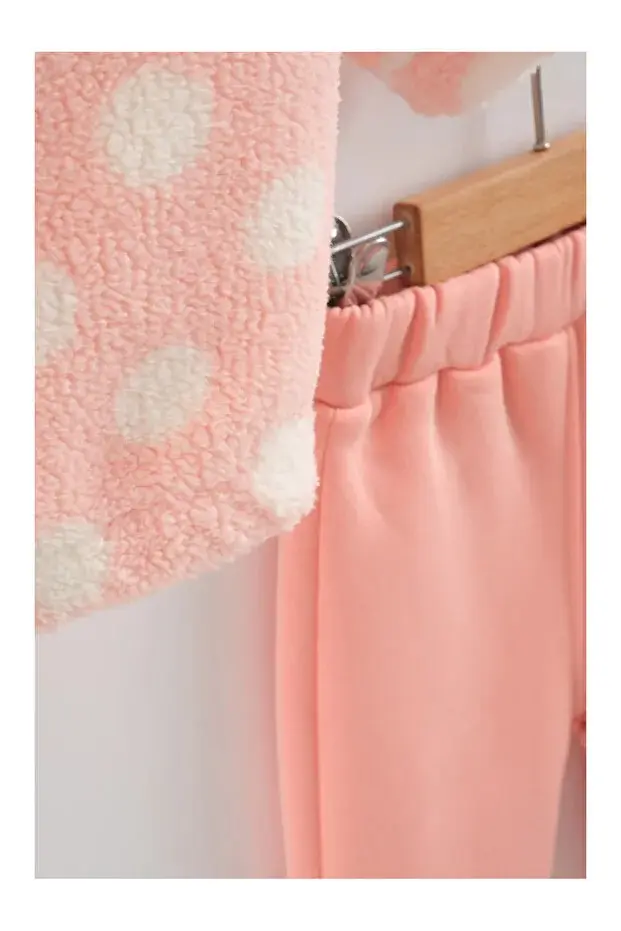 Kız Bebek Peluş Kaban Somon Pembe 3 lü Takım - (9-12-18 Ay ) Seri - 1106-Somon Pembe