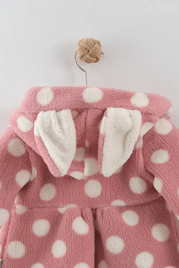 Kız Bebek Peluş Kaban Tavşan Ayak Nakışlı 3'lü Eşofman Takım (9-12-18 Ay) Seri - 895-Gül Kurusu