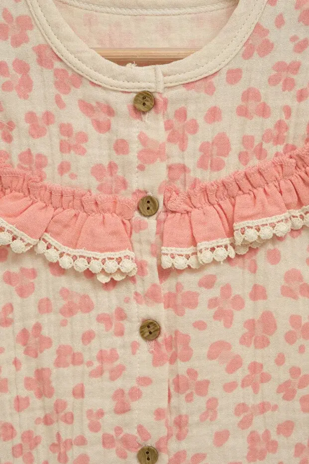 - Yuvarlak yaka tipi, klasik ve zamansız bir görünüm kazandırırken, çiçekli desenleriyle neşeli bir stil sunar.
