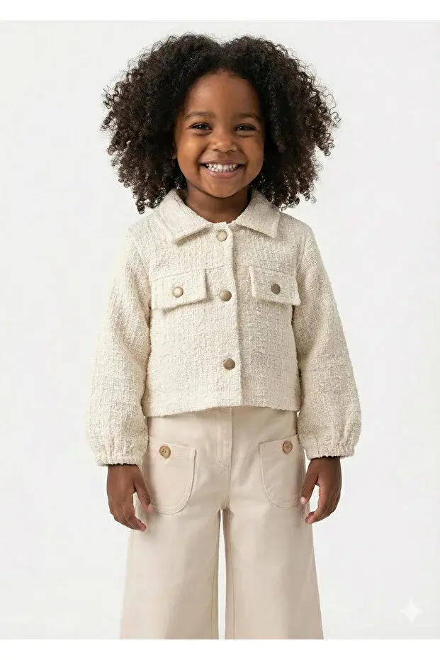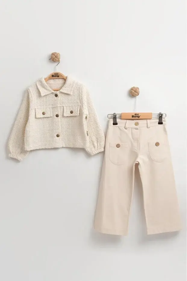 - Rahat hareket etmeyi seven kız çocukları için ideal, geniş paçalı pantolon ve şık ceketten oluşan 2'li takım.