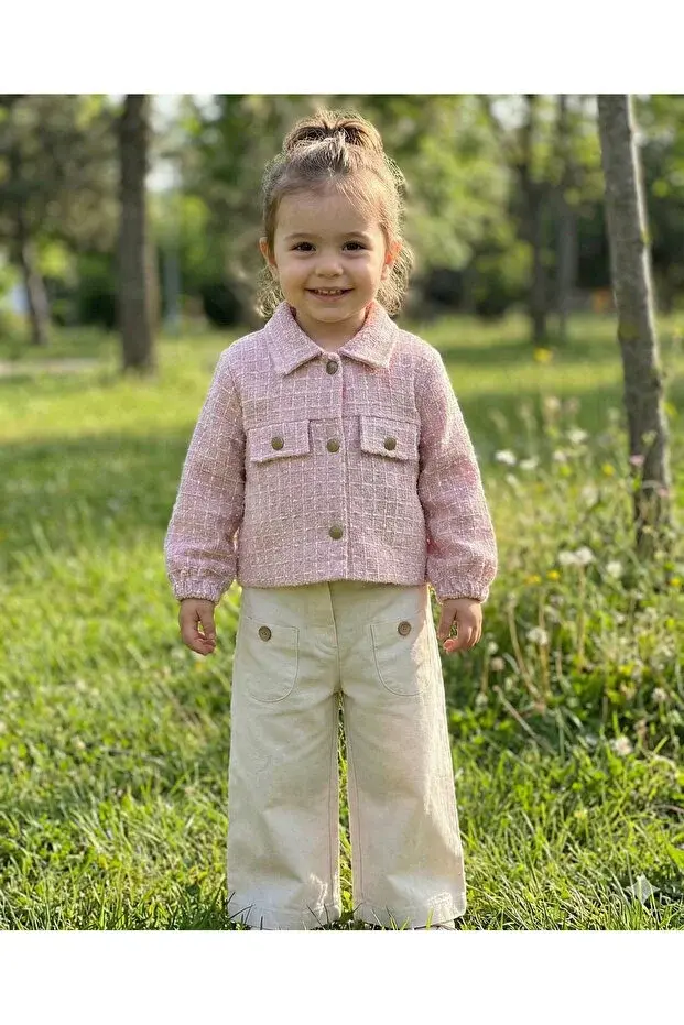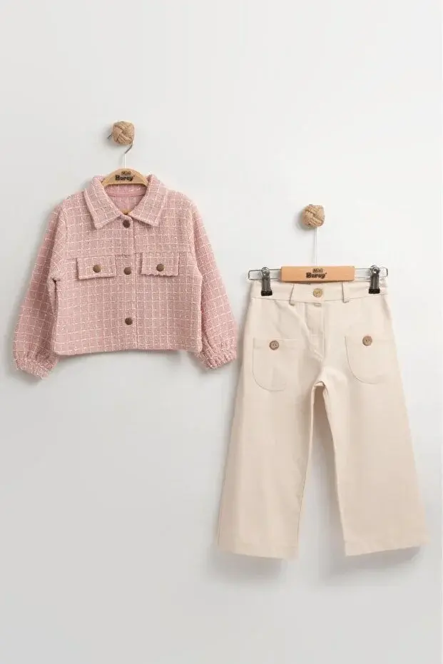 Kız Çocuk İspanyol Paça Pantolon & Ceket 2’li Takım (2-3-4-5 Yaş) - Pamuklu Seri - 1054-Pembe