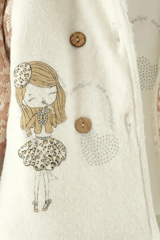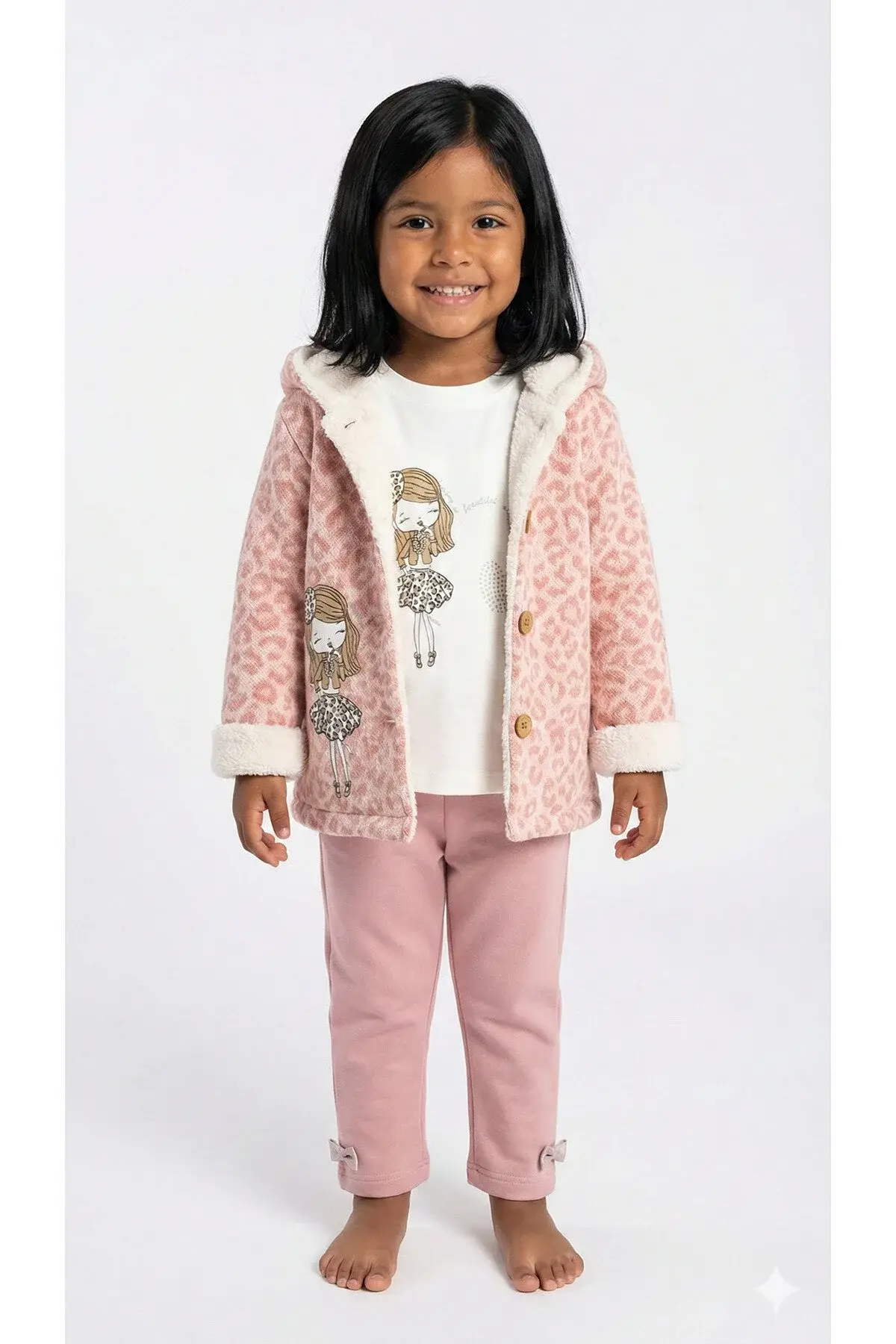 Kız Çocuk Peluş Kaban ve Pantolon Takım (1-2-3 Yaş) Seri - 1126-Bej