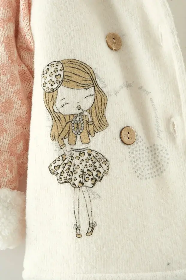 Kız Çocuk Peluş Kaban ve Pantolon Takım (1-2-3 Yaş) Seri - 1126-Somon Pembe