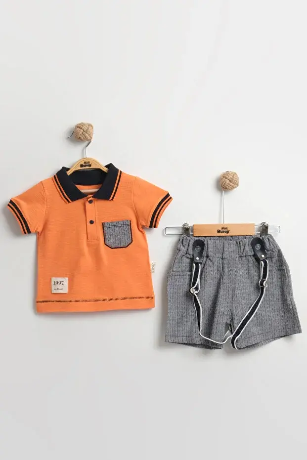 Lacost Tarz Askılı Erkek Bebek Şortlu Yazlık Takım 9-12-18 Ay - %100 Organik Pamuk Seri -952-Turuncu