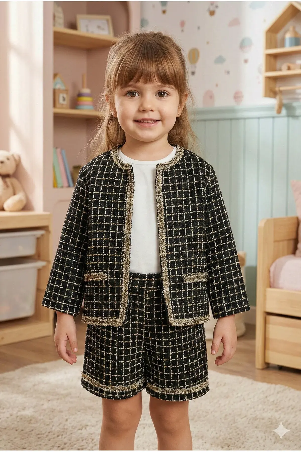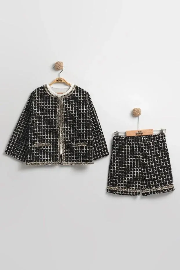 Müslin Ceketli Şortlu Siyah 3'lü Kız Çocuk Takım (2-3-4-5 yaş) Seri - 1052-Siyah