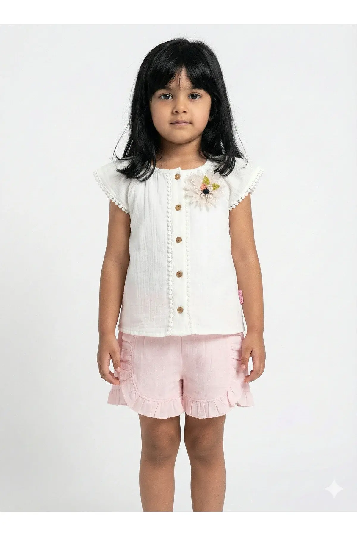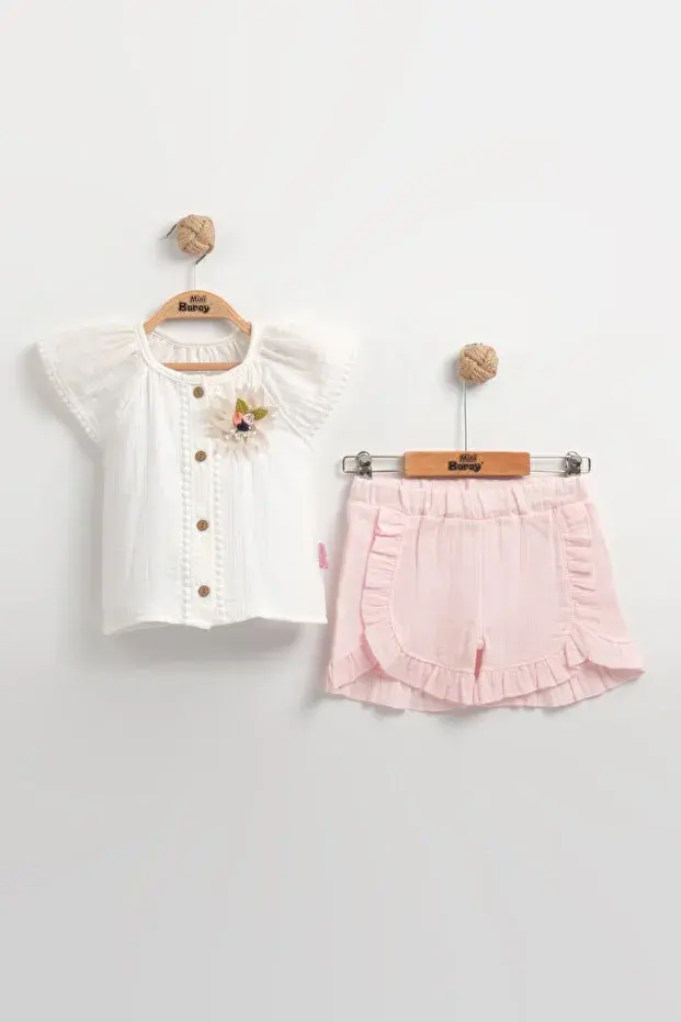 Müslin Kız Bebek Gömlek Seti (2-3-4-5 yaş) %100 Pamuk - Hipoalerjenik ve Yumuşak Seri - 932-Açık Pembe