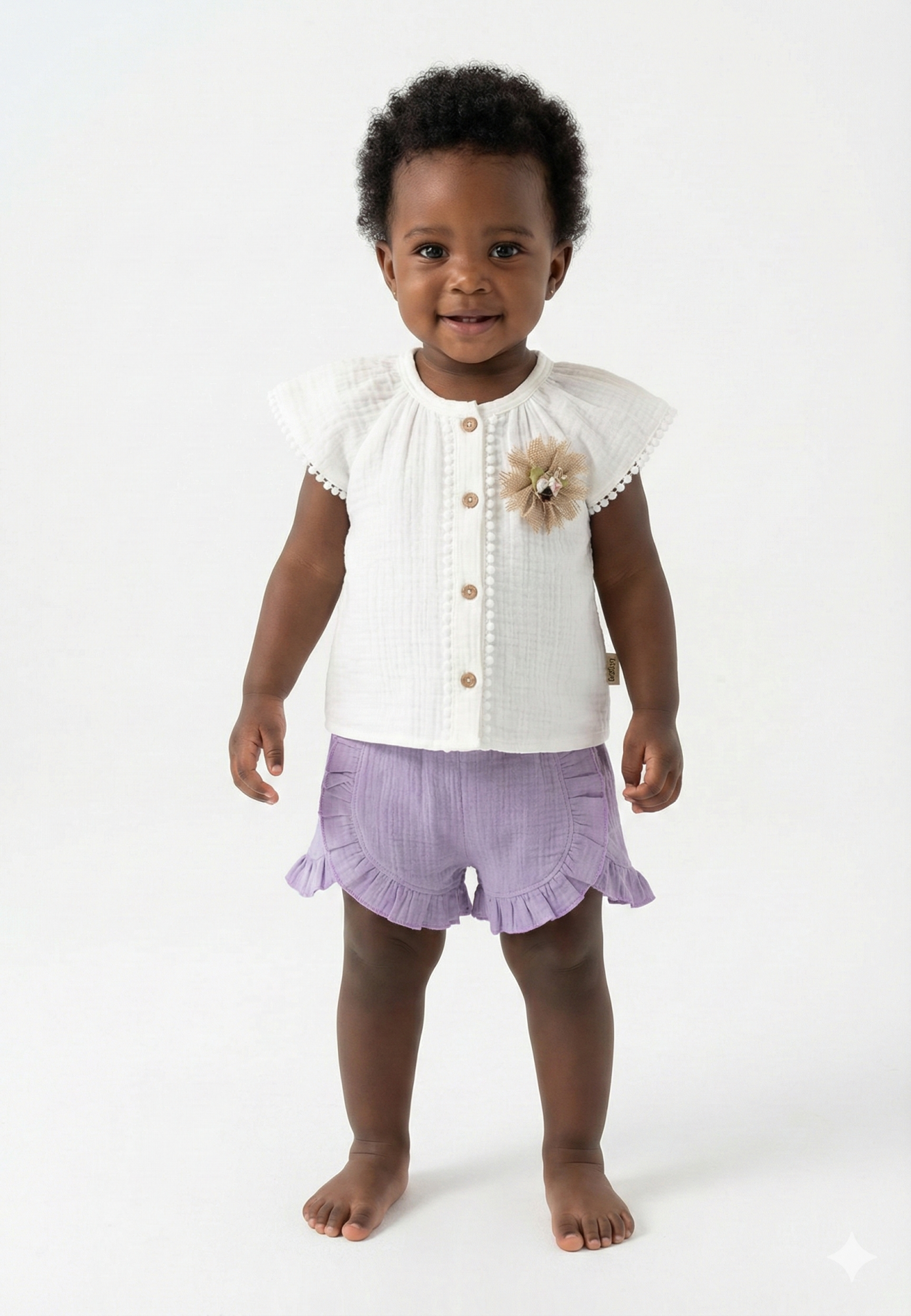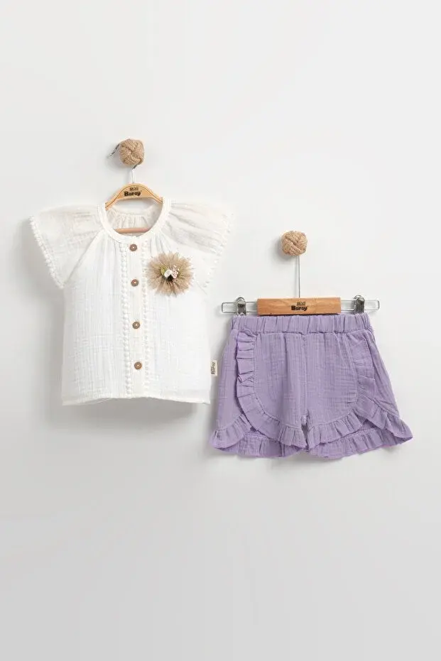 Müslin Kız Bebek Şortlu Mor Gömlek Seti 2'li Takım (9-12-18 AY) Seri - 748-Mor