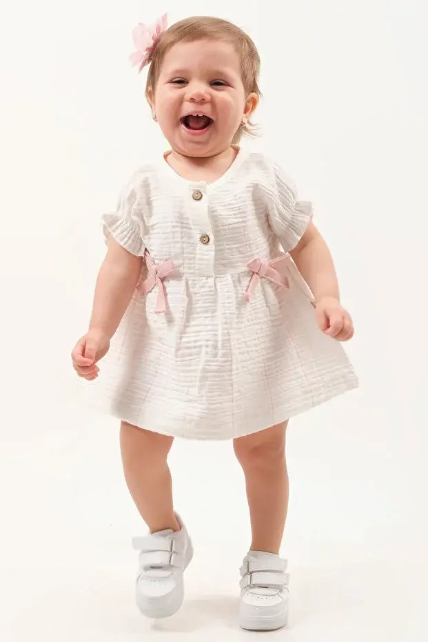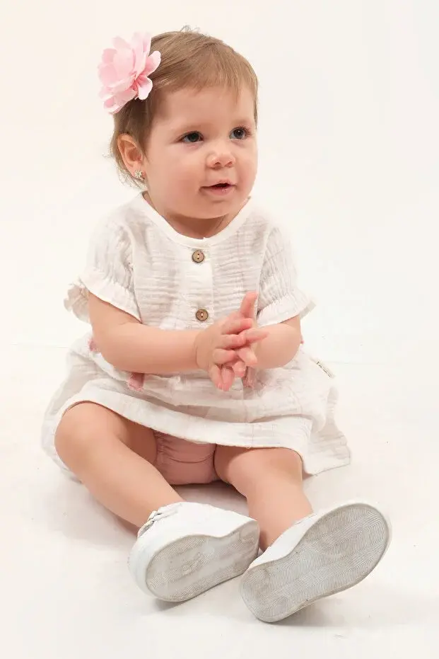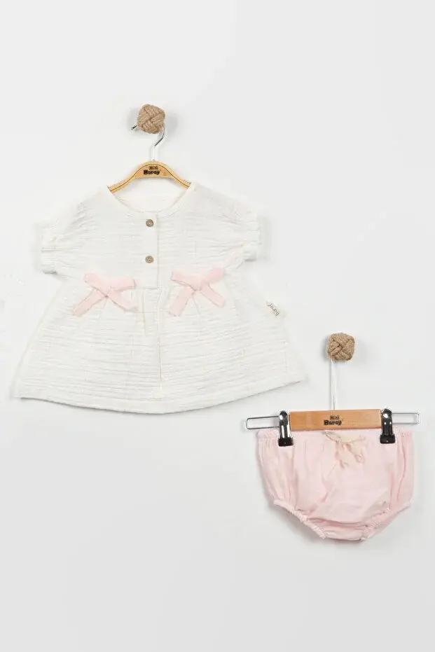 Müslin Külot Şortlu Yazlık Kız Bebek Takımı (9-12-18 Ay) %100 Pamuk Nefes Alabilir Seri - 1006-Beyaz