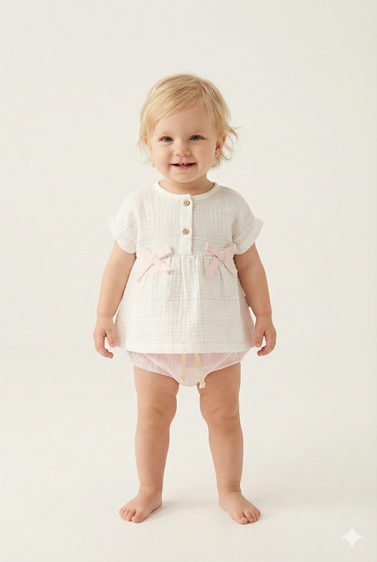 Müslin Külot Şortlu Yazlık Kız Bebek Takımı (9-12-18 Ay) %100 Pamuk Nefes Alabilir Seri - 1006-Pembe