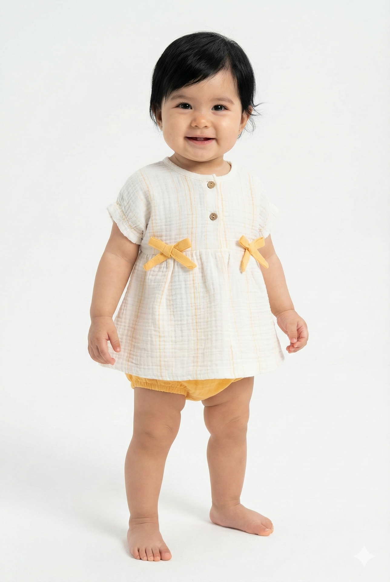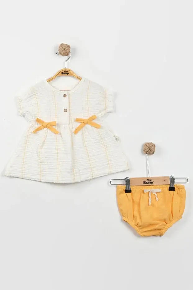 Müslin Külot Şortlu Yazlık Kız Bebek Takımı (9-12-18 Ay) %100 Pamuk Nefes Alabilir Seri - 1006-Sarı