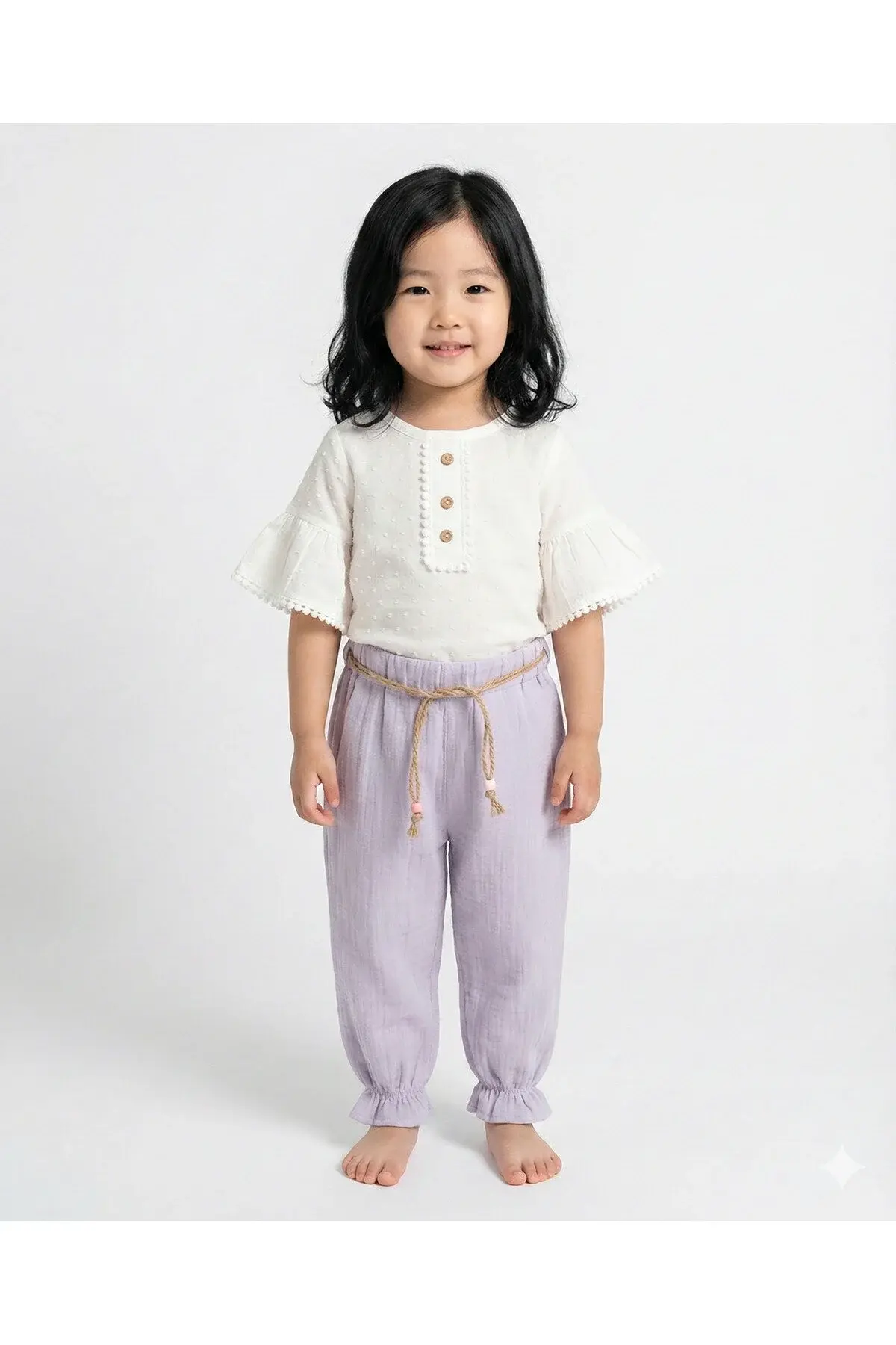 Müslin Pantolonlu Kız Takımı Seti (2-3-4-5 yaş ) %100 Pamuk - Rahat Hareket Kolaylığı Seri - 877-Mor