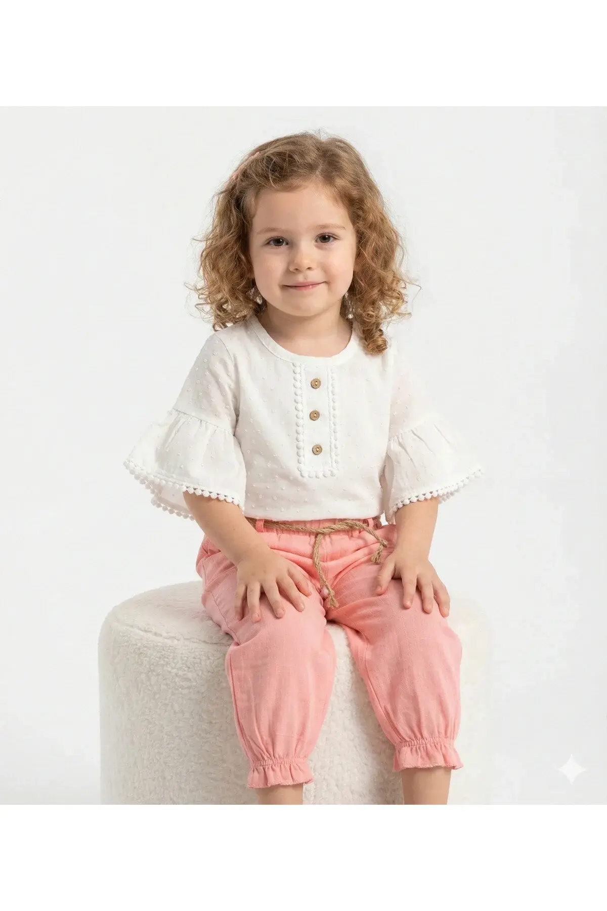 Müslin Pantolonlu Kız Takımı Seti (2-3-4-5 yaş ) %100 Pamuk - Rahat Hareket Kolaylığı Seri - 877-Pembe