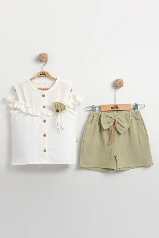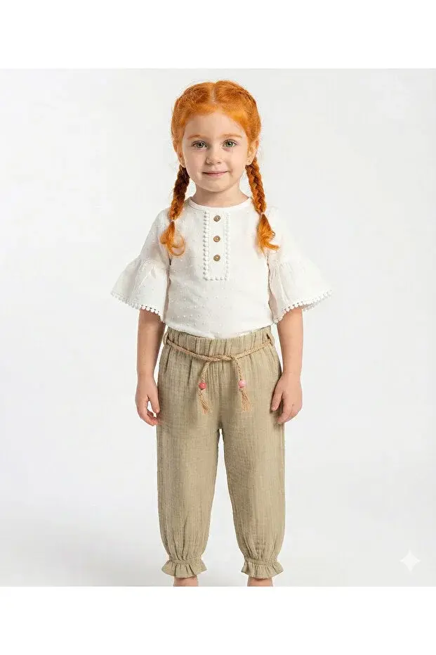 Müslin Pantolonlu Kız Takımı Seti (2-3-4-5 yaş ) %100 Pamuk - Rahat Hareket Kolaylığı Seri - 877-Yeşil