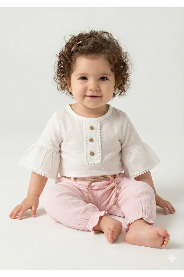 Müslin Pantolonlu Kız Takımı Seti (9-12-18 Ay) %100 Pamuk - Rahat Hareket Kolaylığı Seri - 749-Açık Pembe