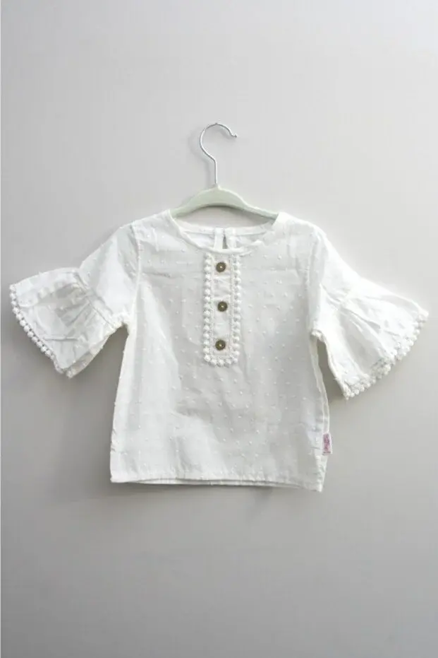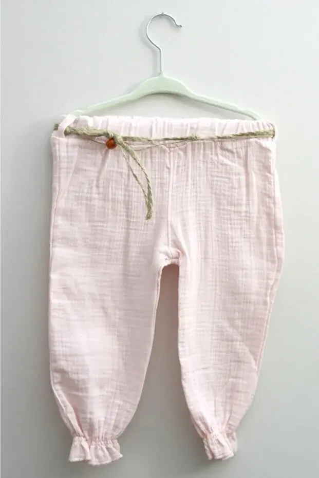 Keten Pantolon / Gömlek / Boncuklu Kemer / 2'li Kız Bebek Takımı