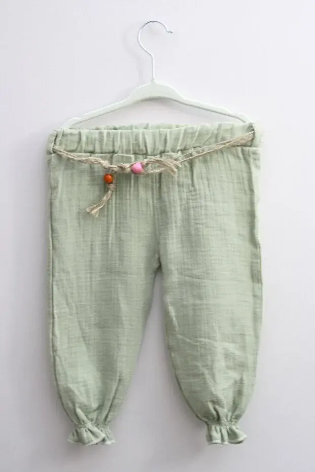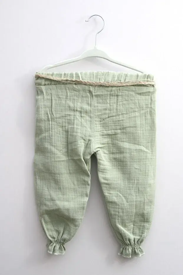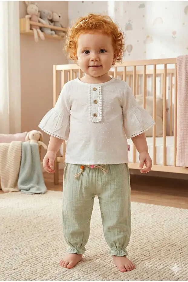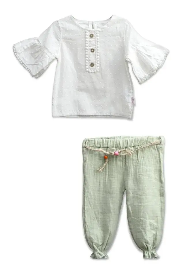 Müslin Pantolonlu Kız Takımı Seti (9-12-18 Ay) %100 Pamuk - Rahat Hareket Kolaylığı Seri - 749-Yeşil