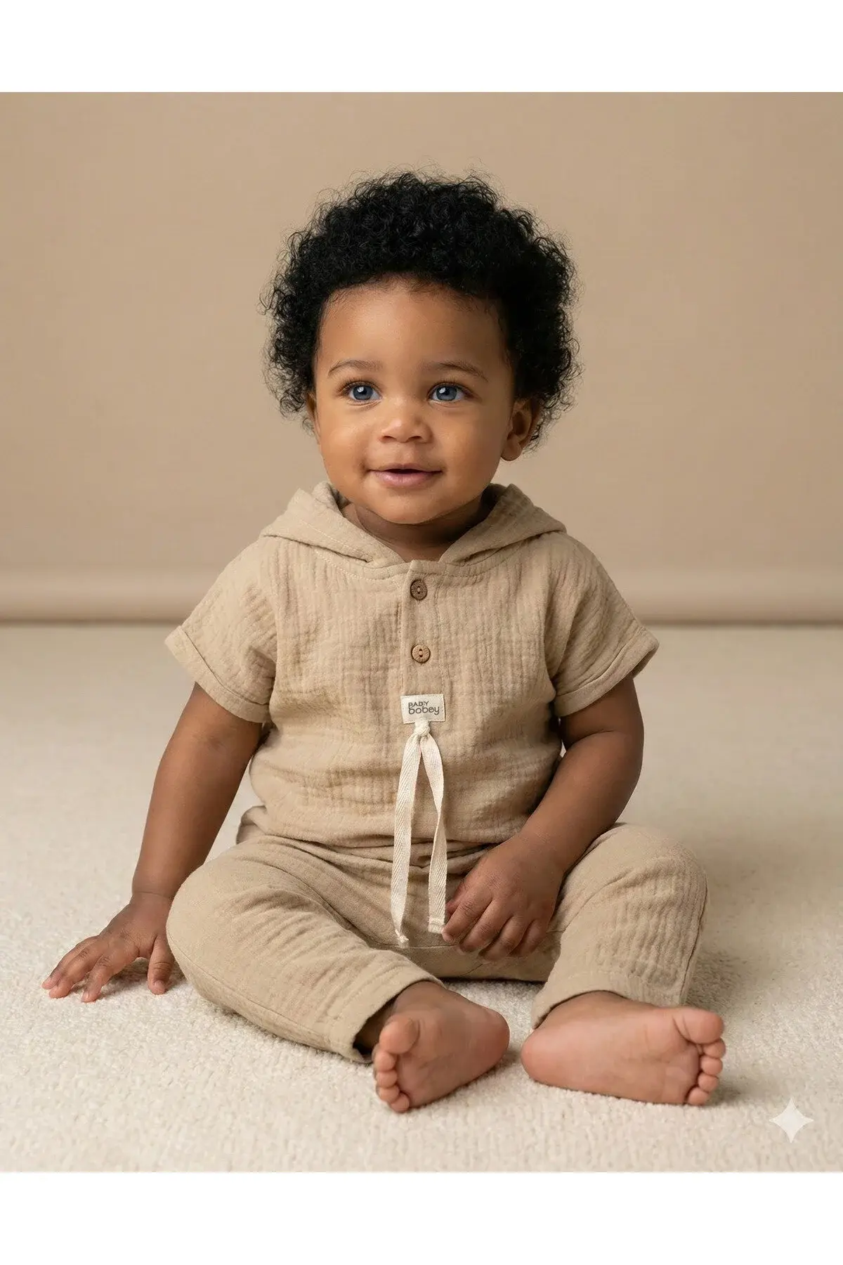 - %100 organik pamuklu kumaştan üretilmiş, bebeğinizin hassas cildine nazik dokunuşlar sunar. - Nefes alabilir müslin kumaş yapısı sayesinde bebeğinizin cildinin gün boyu rahat etmesini sağlar. - Sevimli ayıcık baskısı ile şirin bir görünüm kazandırırken, bej rengi her ortama uyum sağlar. - Kısa kollu tasarımı ve lastikli paça detayı ile bebeğinizin hareket özgürlüğünü kısıtlamaz. - Kapüşonlu yaka tipi, soğuk havalarda ekstra koruma ve şıklık sunar. - 2'li paket içeriğiyle hem ekonomik hem de pratik bir kullanım imkanı tanır. - Bol kalıbı sayesinde bebeğinizin rahatça hareket etmesini sağlar ve uzun boyu ile ideal bir uyum sunar. - Günlük kullanım için ideal olan bu body takımı, basic koleksiyonun vazgeçilmez parçasıdır. - Sürdürülebilirlik detayına sahip olmasıyla çevre dostu bir tercih olarak öne çıkar. - 30 derecede yıkama talimatına uygun şekilde kolayca temizlenebilir; 150 derece ısıda ütülenebilir.