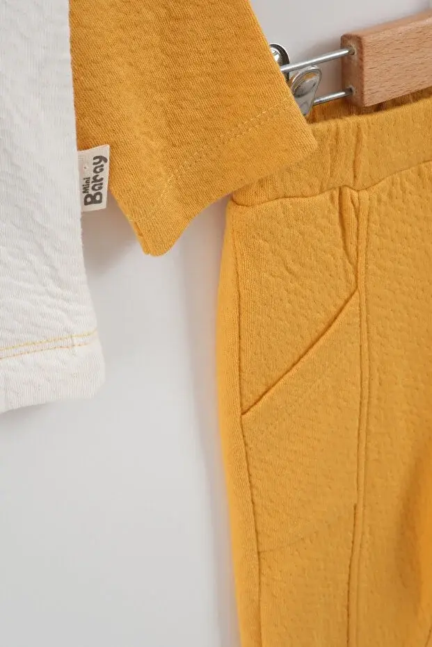 Örme Müslin Gemili Sarı Takım (9-12-18 Ay ) Seri - 955-Sarı