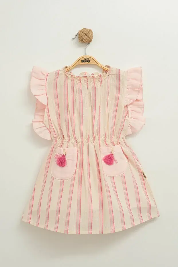 Püsküllü Cepli Kız Elbise(1-2-3-4 Yaş) Seri -851-Pembe