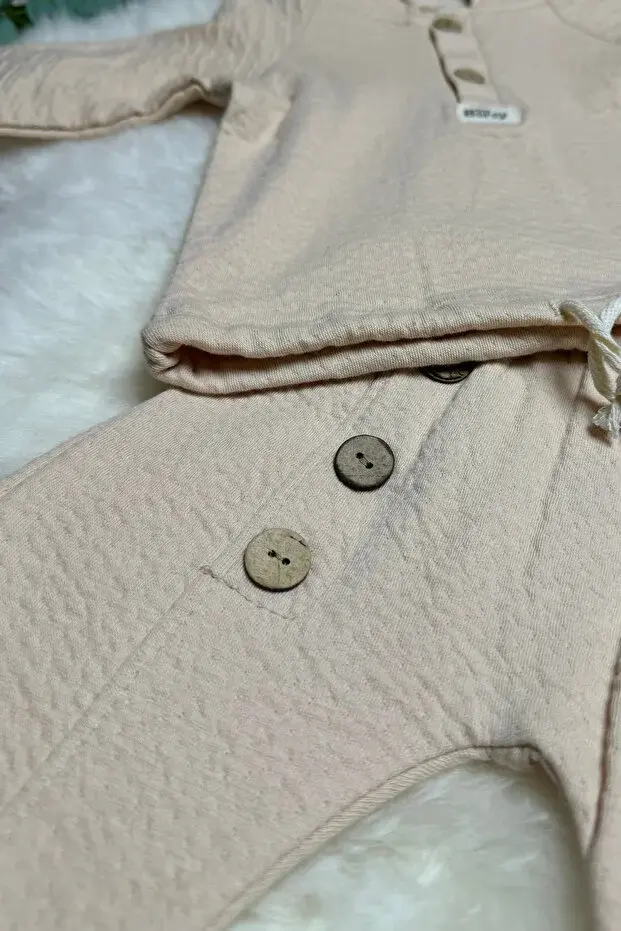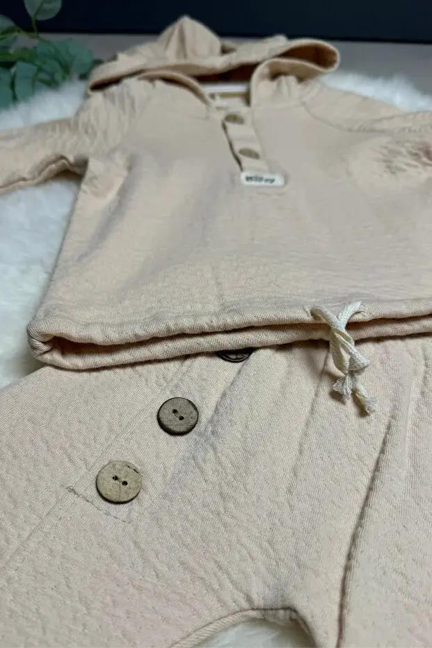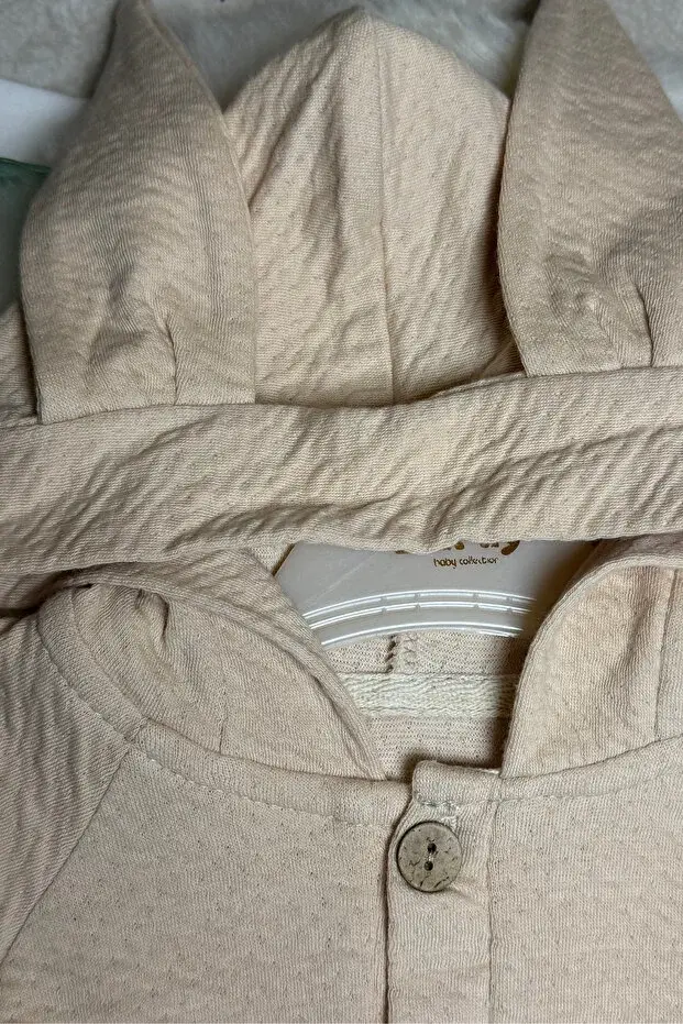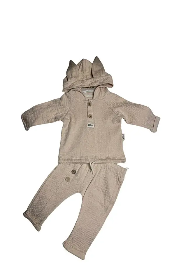 Tavşan kulaklı Örme Müslin İkili Takım 9 -12-18 Ay Seri -915-Bej